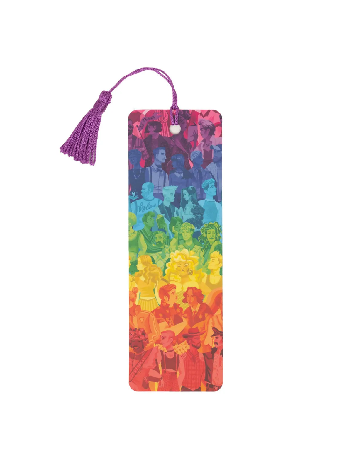 Rainbow Readers bookmark – Celebrate the rainbow of readers who share the universal love of a good book. Illustrated by Karl James Mountford.