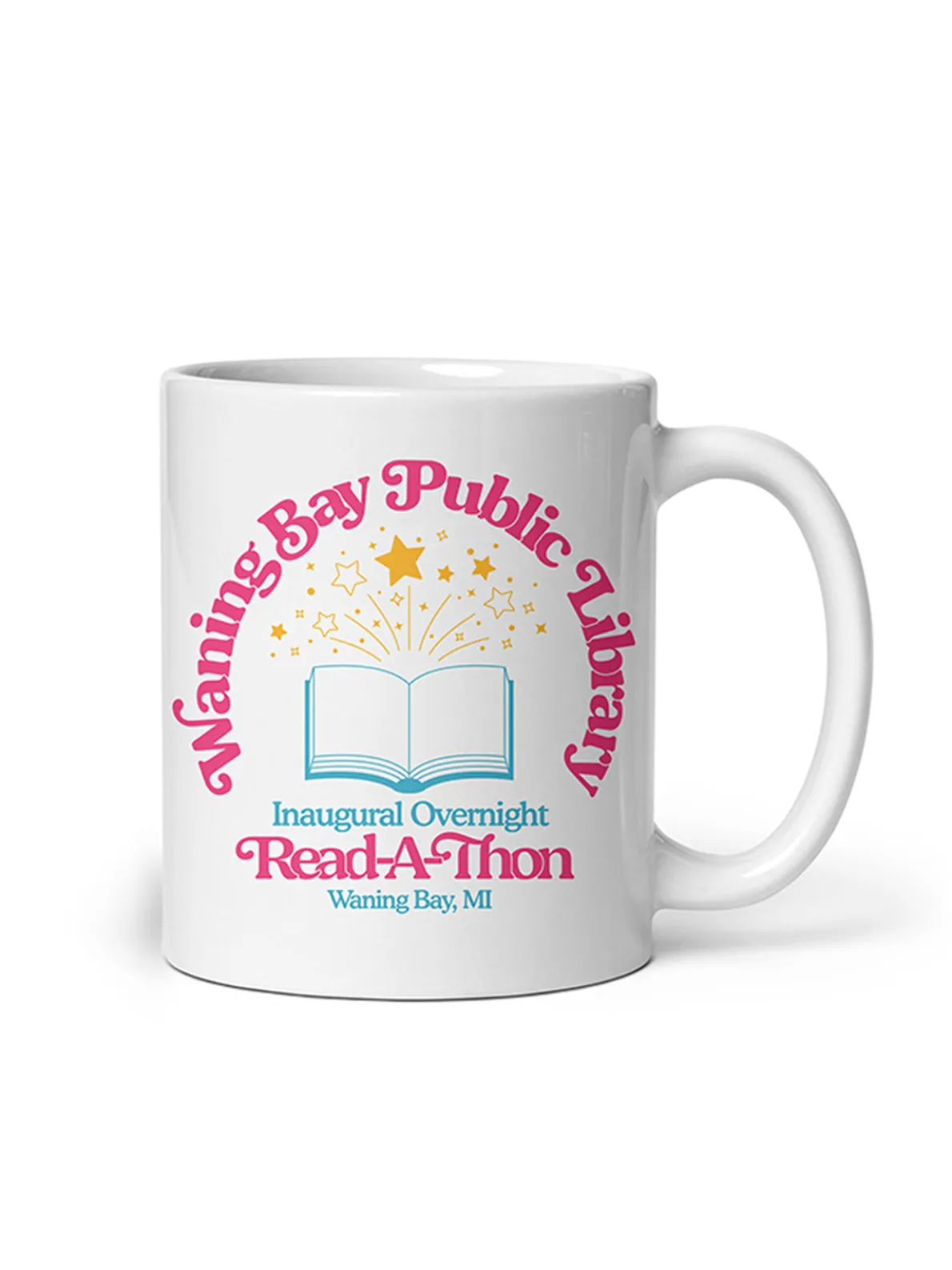 Waning Bay Public Library Inaugural Overnight Read-A-Thon mug – from Funny Story by Emily Henry.