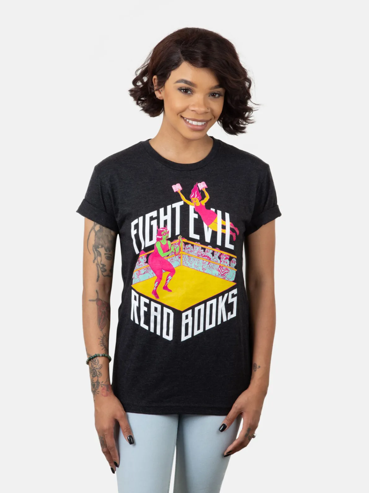 “Fight Evil, Read Books.” 2019 version – in collaboration with Pantheon Books. Artwork by Leela Corman.