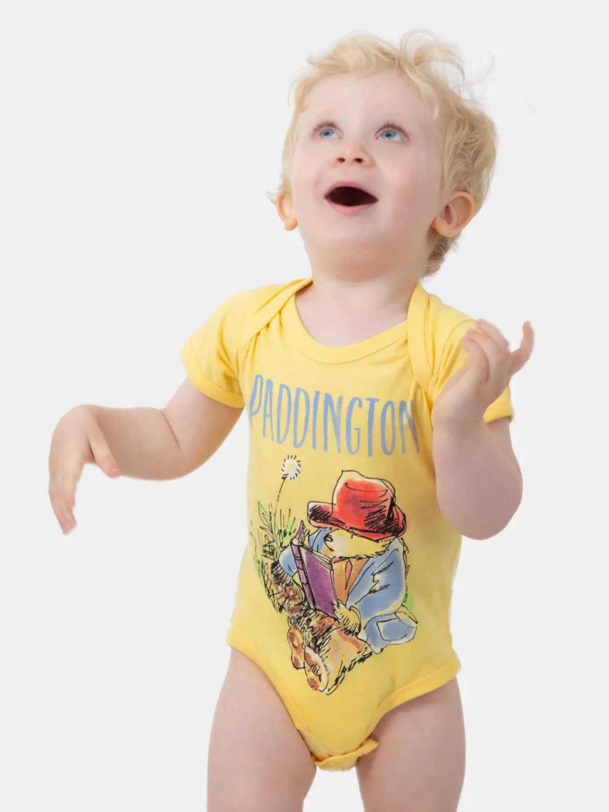 Introduce your little one to the charming world of Paddington Bear with our adorable Paddington Bear reading a book baby bodysuit.