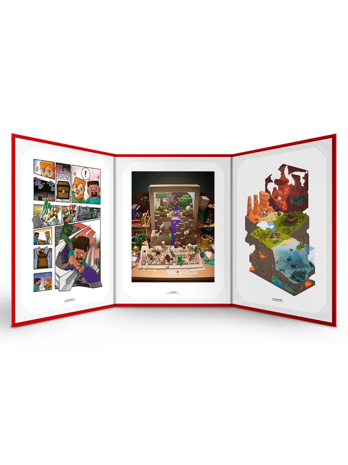 - Signed art prints created by illustrator Doug John Miller, Minecraft manga artist Kazuyoshi Seto, and Mojang art director Markus “Junkboy” Toivonen, showcased within a deluxe tri-fold art case