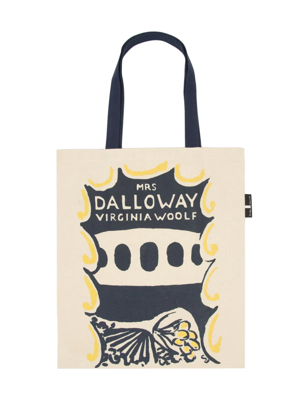 Double-sided canvas tote bag with classic cover art from the first edition covers of To the Lighthouse and Mrs. Dalloway.